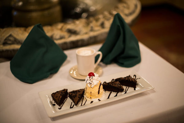 This traditional brownie is served hot with a scoop of vanilla ice cream.