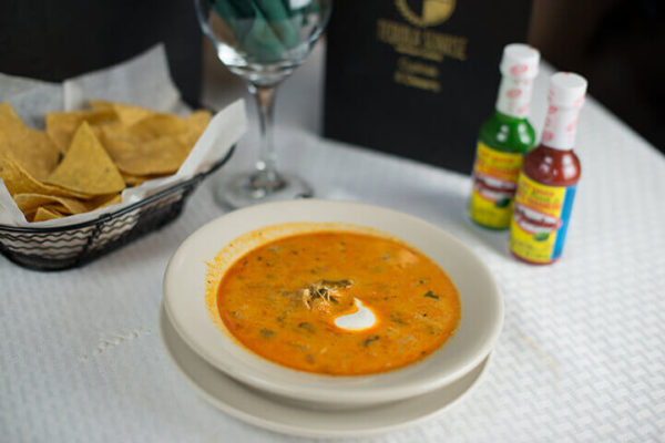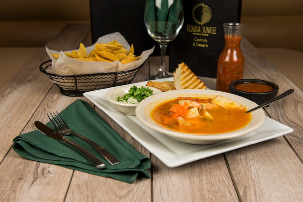 Shrimp, tilapia and veggies on this delicious soup spiced up with chipotle and epazote herb. Served with garlic bread.