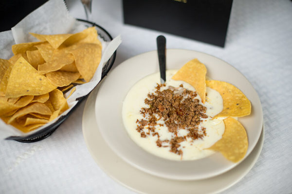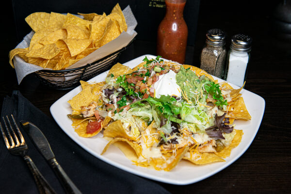 Perfect for sharing. Ground beef or shredded chicken on top of tortilla chips, melted cheese, and queso dip. Served with beans, lettuce, diced tomatoes, shredded cheese, jalapenos, and sour cream.
