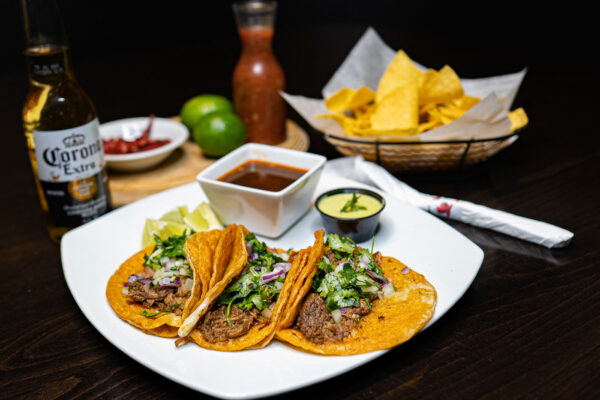 3 corn tortilla tacos filled with choice of meat, grilled onions, cilantro and diced onions. Served with esquite, pickled onions, cucumbers, limes and morita sauce. Choice of meat, carne asada, grilled chicken, carnitas, or pastor.