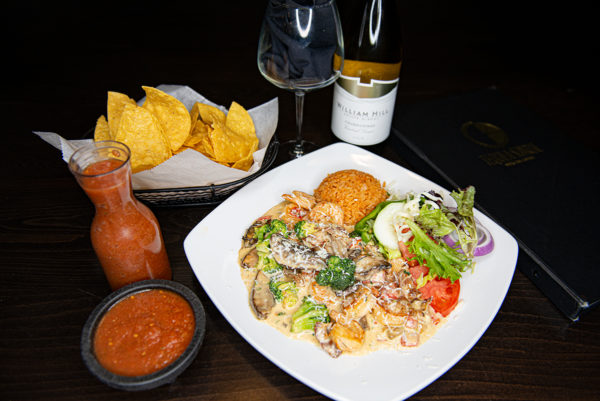 Grilled tilapia, shrimp, and crab meat on top of tortilla chips with melted cheese and queso dip. Topped with avocado relish and sour cream.