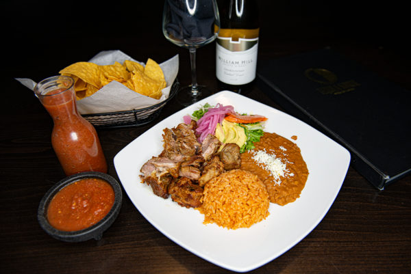 3 corn tortilla tacos with sautéed portabella, onions, and epazote herb then topped with a slice of avocado. Served with rice, lettuce, pico de gallo, sour cream, and Morita sauce.