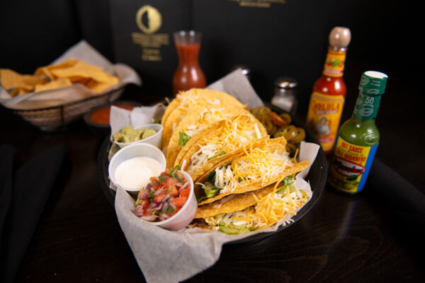 6 crunchy or soft tacos with your choice of ground beef or shredded chicken. Loaded with lettuce, cheese, pico de gallo, sour cream, guacamole, and jalapeños.
