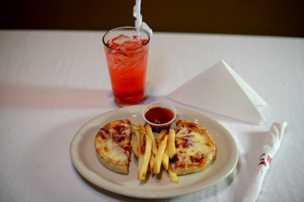 Pepperoni and Cheese. Mini combos served with fries, soft drink and ice cream sundae.